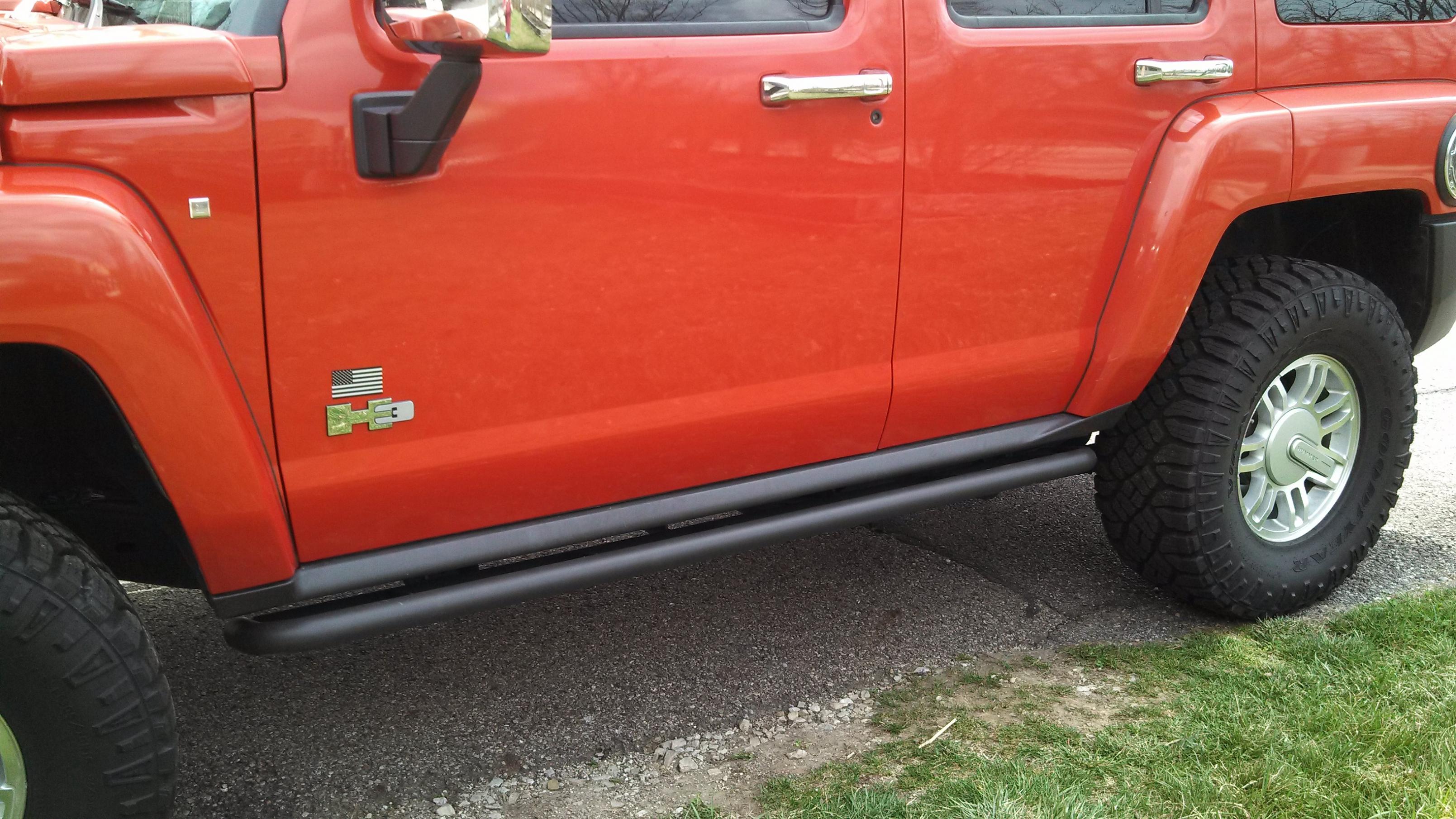 H3 rock sliders.jpgH3 Rock Sliders2.jpgBought these off of Ebay from autopartsurplus here in Columbus, OH. Went down and picked them up in person and saved shipping. Has about 7 left still in the sealed boxes. I picked these up because of price and they should work great for my needs. The H3 is my wife's daily driver so I don't plan on getting to crazy on the trail. They seem heavy duty enough,maybe 45lbs a piece and took about 45 min to install myself, I chased the threads on all the holes and the antiseized bolts went in without a hitch. The modding process continues, I may have to work extra hard on picking up aluminum cans so I can afford more stuff.:) UCP is next.