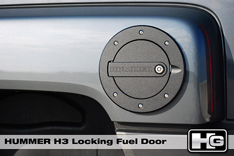 Locking Fuel Door in a Smooth, Powder Coat Black finish. Made of the finest Billet Aluminum, T-6061, this item is sure to add elegant style to your Hummer.